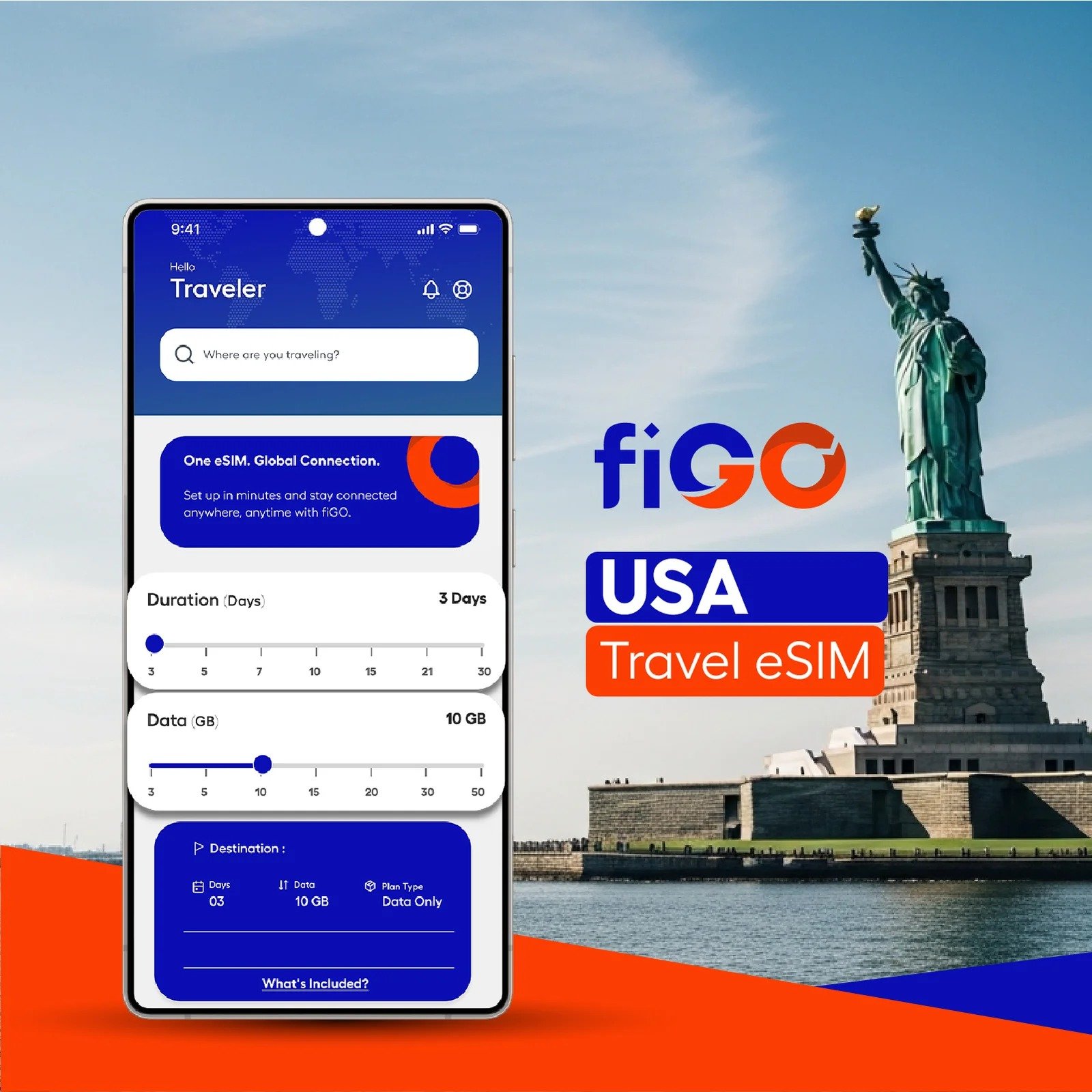 fiGO is a global connectivity platform for travelers and businesses, delivering instant eSIM internet access worldwide. Activate in seconds and stay connected through trusted high-performance international networks with fast, secure mobile data, all managed effortlessly from the fiGO app.